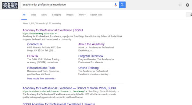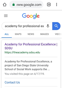 Step 1: Go to a search engine and type in the following, “academy for professional excellence”. We should be the first thing that pops up. Click on our link. https://theacademy.sdsu.edu/