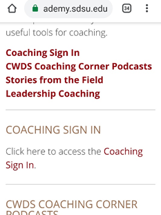 · Scroll down to “Click here to access the Coaching Sign In”.