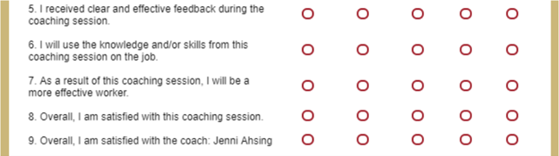 Every coaching sign in survey must be verified by the coach. This can be done after the coaching session if there is time or at the end of the day. We ask that they be verified within 24 hours as this verification process is what triggers the satisfaction survey being sent.