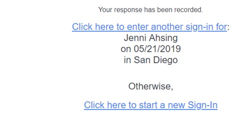 Step 8: There will be an option once the learner submits the survey to enter another sign in for the same coach or start a new sign in.